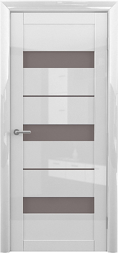 Дверь Прага ширина 80 см Белый глянец Глянец Стекло мателюкс бронза с замком в Барнауле