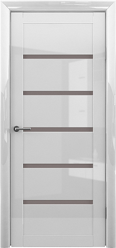 Дверь Вена ширина 90 см Белый глянец Глянец Стекло мателюкс бронза с замком в Барнауле